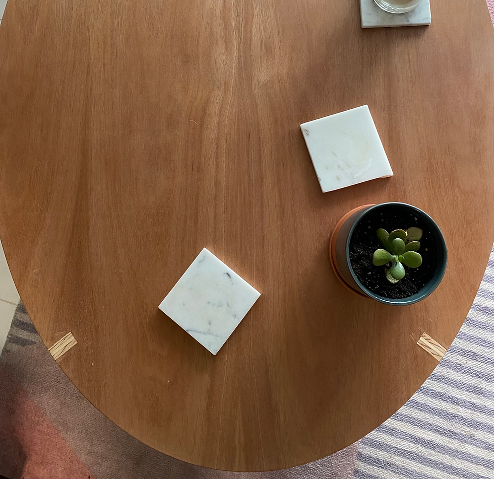 Small coffee table made from CNC cut plywood. Table is made entirely from 6 pieces that friction-fit together without glue or fasteners. Strong enough to stand on, yet easy to disassemble and pack flat for moving or storage.